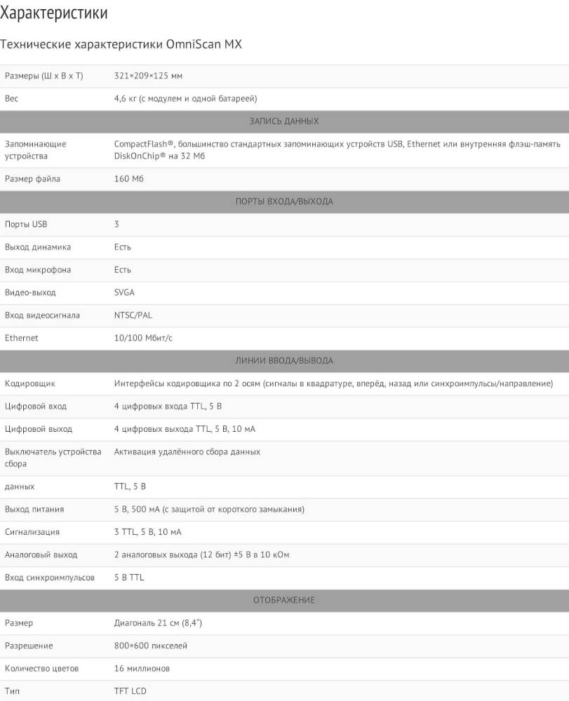 Дефектоскоп OmniScan MX представляет собой портативное устройство с широкими возможностями ультразвукового и вихретокового контроля различных материалов. Он обладает модульной конструкцией, способен работать с обычными пьезоэлектрическими преобразователями, фазированной решеткой, вихретоковыми датчиками и матрицами. Может использоваться как самостоятельно, так и в составе автоматизированных систем контроля. Позволяет сохранять полученные данные в виде А-, В- или С-сканов для последующей обработки на компьютере с помощью специального ПО.