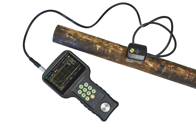 Импульсный вихретоковый дефектоскоп PE1437 измеряет усреднённую толщину металла под датчиком. Пользователю необходимо задать известную толщину объекта контроля в одной точке для калибровки прибора, и после этого прибор будет измерять все остальные точки относительно точки калибровки. Подходит для поиска общей площадной коррозии и крупной язвенной коррозии, расположенной как на внешней поверхности металла, так и на внутренней.