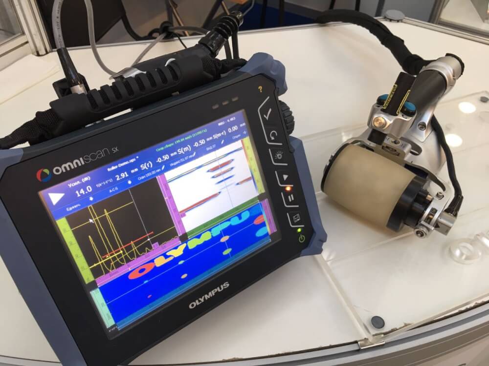 - Дефектоскоп с фазированными решетками OmniScan SX и сканер для коррозионного мониторинга RollerFORM (Роликовый преобразователь)