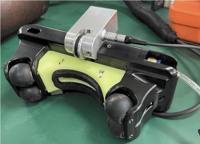 - Один и тот же фазированный преобразователь и сканер можно использовать для труб и отводов разных диаметров за счет быстрой замены водяной призы