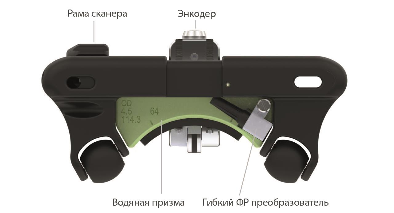 Модульная конструкция сканера позволяет использовать и менять между собой преобразователи различной частоты. Основные модули включают в себя: корпус сканера, энкодер (датчик пути) E05, блок водяного столба, гибкий фазированный преобразователь.